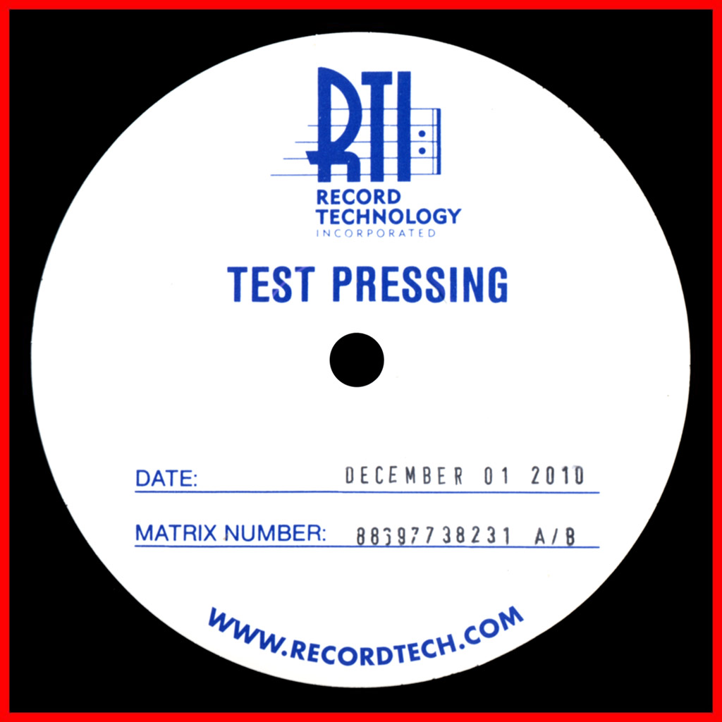This is a 180-gram test pressing with a generic RTI test pressing label on side one which has date of production, matrix number, and side delineations stamped. Side two is a plain white label.