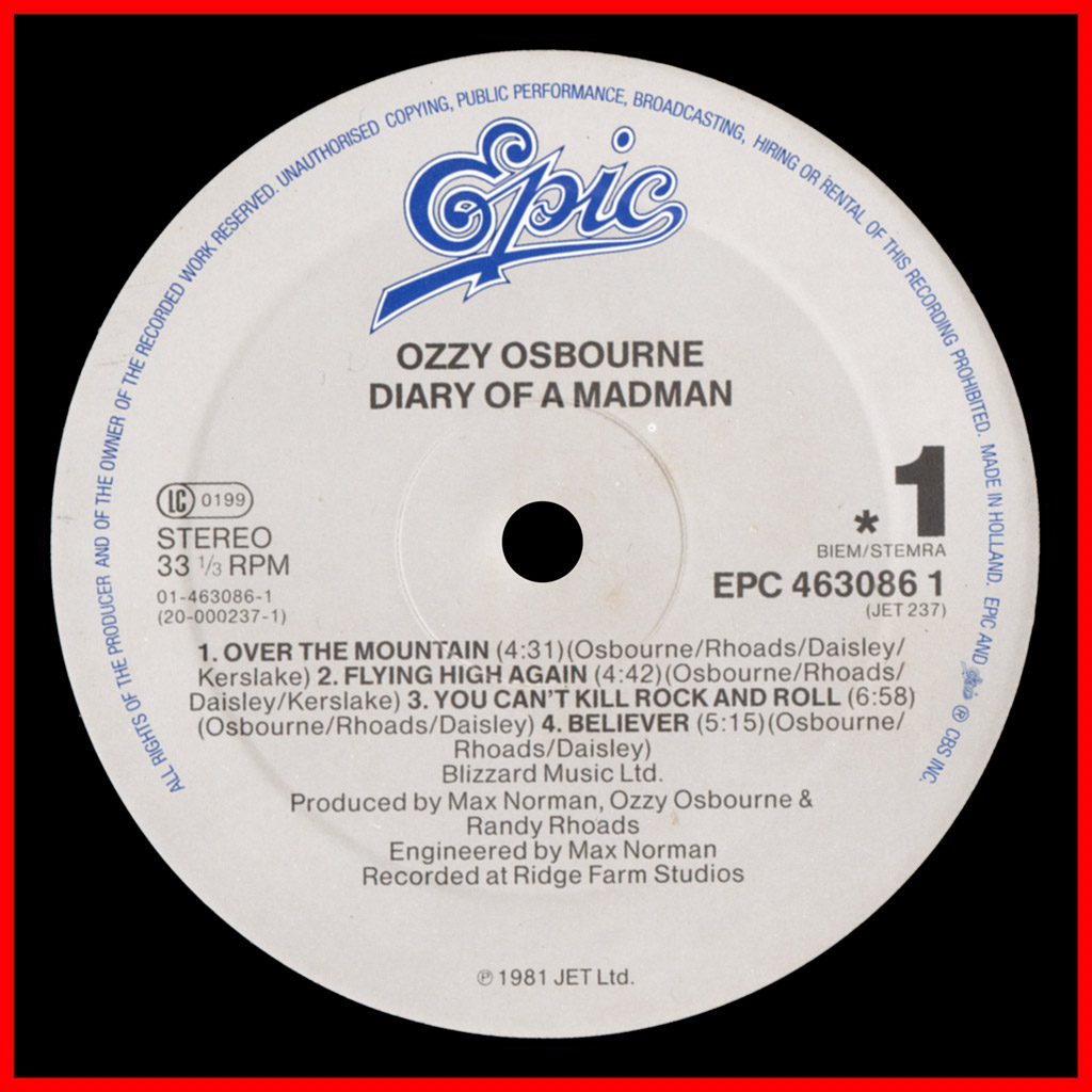 Diary of a Madman was the second solo album by Ozzy Osbourne. It was recorded from the 9th February to the 23rd March 1981 and it was first released on November 7th 1981. The album is Osbourne’s personal favourite of all his releases. The album has sold over 3.2 million copies worldwide.