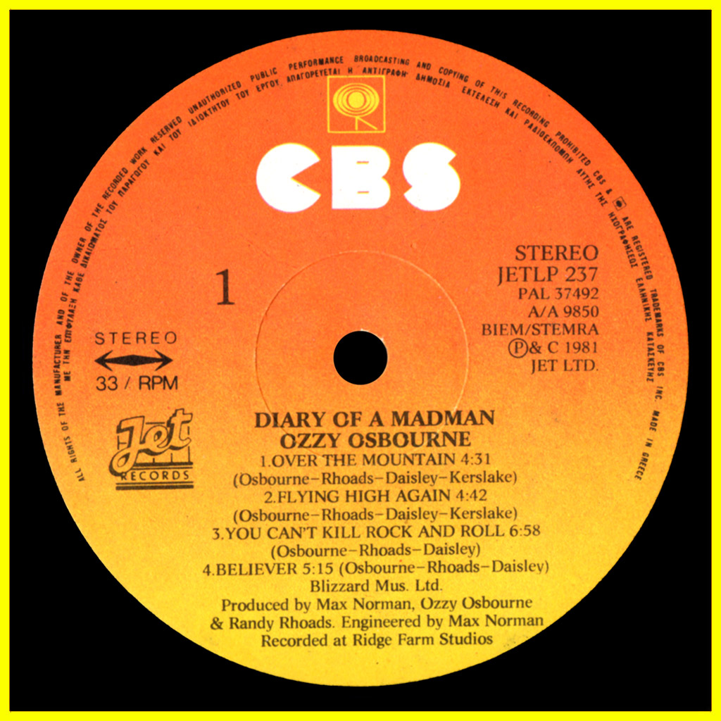I have broken down my collection of Diary of a Madman discs into alphabetical order by country. The majority of the images are of the A side of the label only, generally the cover art is the same throughout all the copies. Everything shown on this page is from my own personal collection.